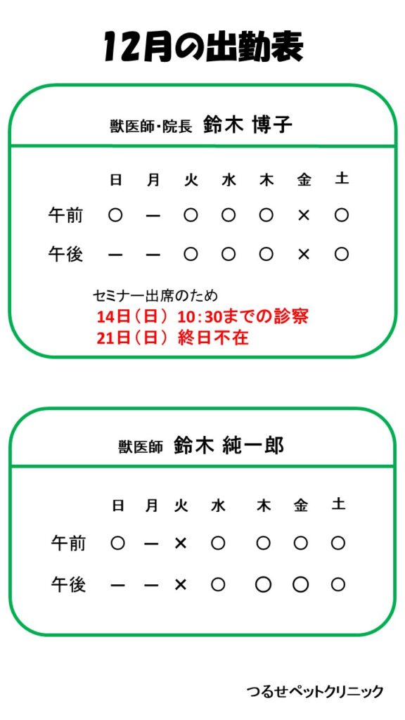 12月 獣医師出勤表